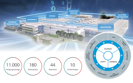 • Integration of factory-specific applications, such as MDE/BDE, ERP, HR or tool management systems